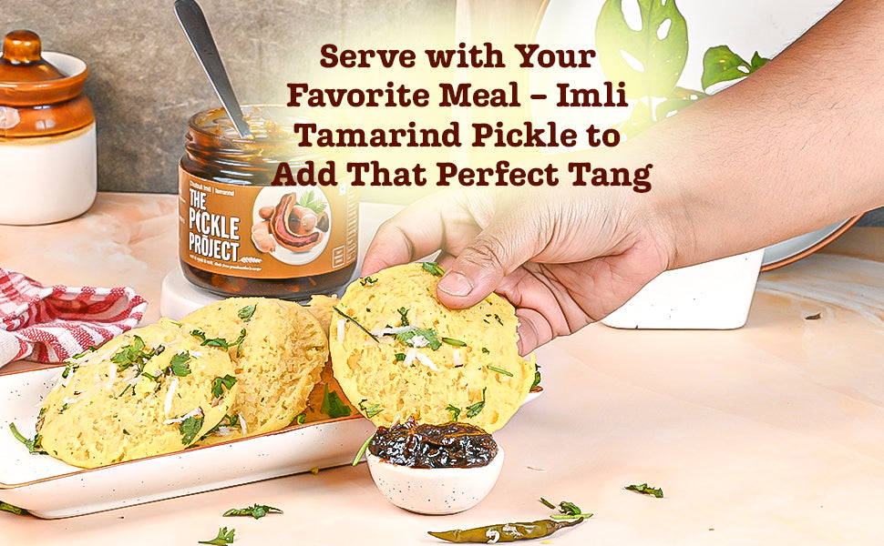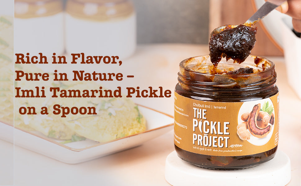 Our Tamarind Pickle is inspired by that very regional flavor — slow-cooked tamarind pulp gently balanced with sweetness to create a rich, smooth, and deeply nostalgic taste.
