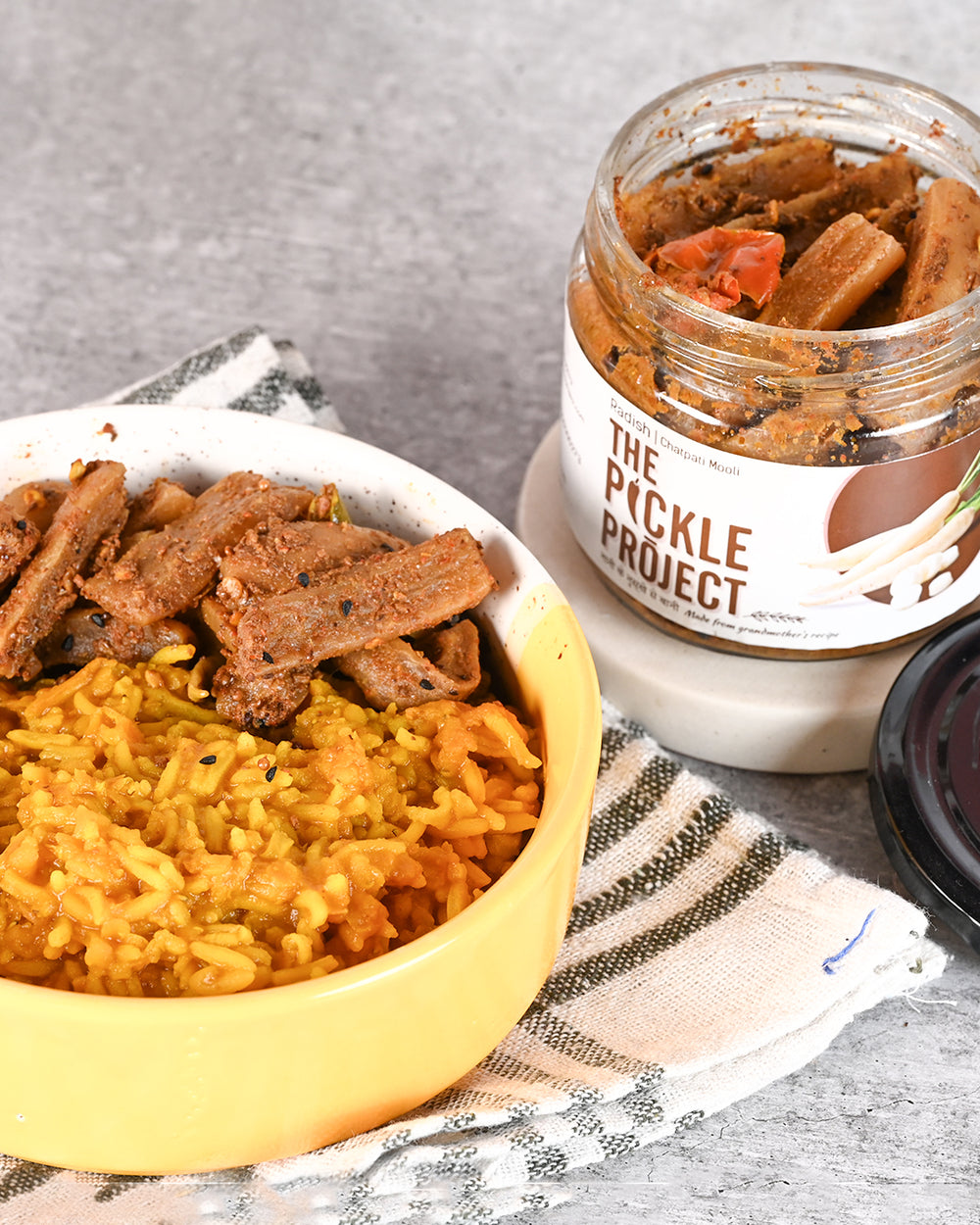 Ingredients: Organic radish, mustard oil, rock salt, red chili, jaggery, traditional spice mix