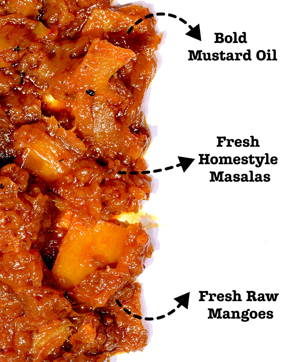 Crafted in small batches using raw mango, garlic, tamarind & pure mustard oil.
